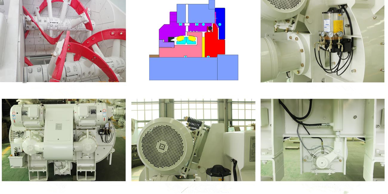 而具有特殊優(yōu)勢(shì)的雙螺帶攪拌裝置,攪拌過程兩軸相向轉(zhuǎn)動(dòng),葉片產(chǎn)生的攪拌力,使攪拌進(jìn)物料在保證劇烈徑向運(yùn)動(dòng)的同時(shí),軸向推動(dòng)加劇,物料在攪拌筒內(nèi)成沸騰狀態(tài)短時(shí)間內(nèi)劇烈而充分?jǐn)嚢?,攪拌效率提高,其它結(jié)構(gòu)攪拌機(jī)與之相比甚遠(yuǎn)。從而使攪拌形式更多樣化,根據(jù)不同的混凝土要求,使攪拌更均勻,效率更高。