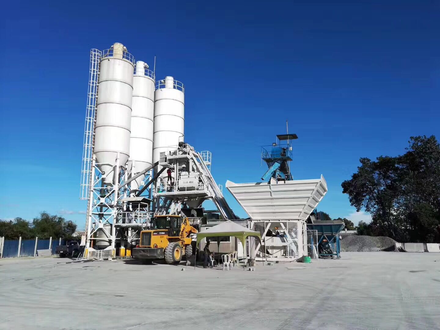 移動(dòng)式混凝土攪拌站是由攪拌平臺(tái)、立軸行星式攪拌機(jī)、雙臥軸強(qiáng)制式攪拌機(jī)、骨料存儲(chǔ)倉(cāng)、骨料計(jì)量裝置、骨料提升裝置、水計(jì)量裝置、控制室等各部分連接在一起,形成一個(gè)獨(dú)立的整體,便于運(yùn)輸、安裝和調(diào)試。